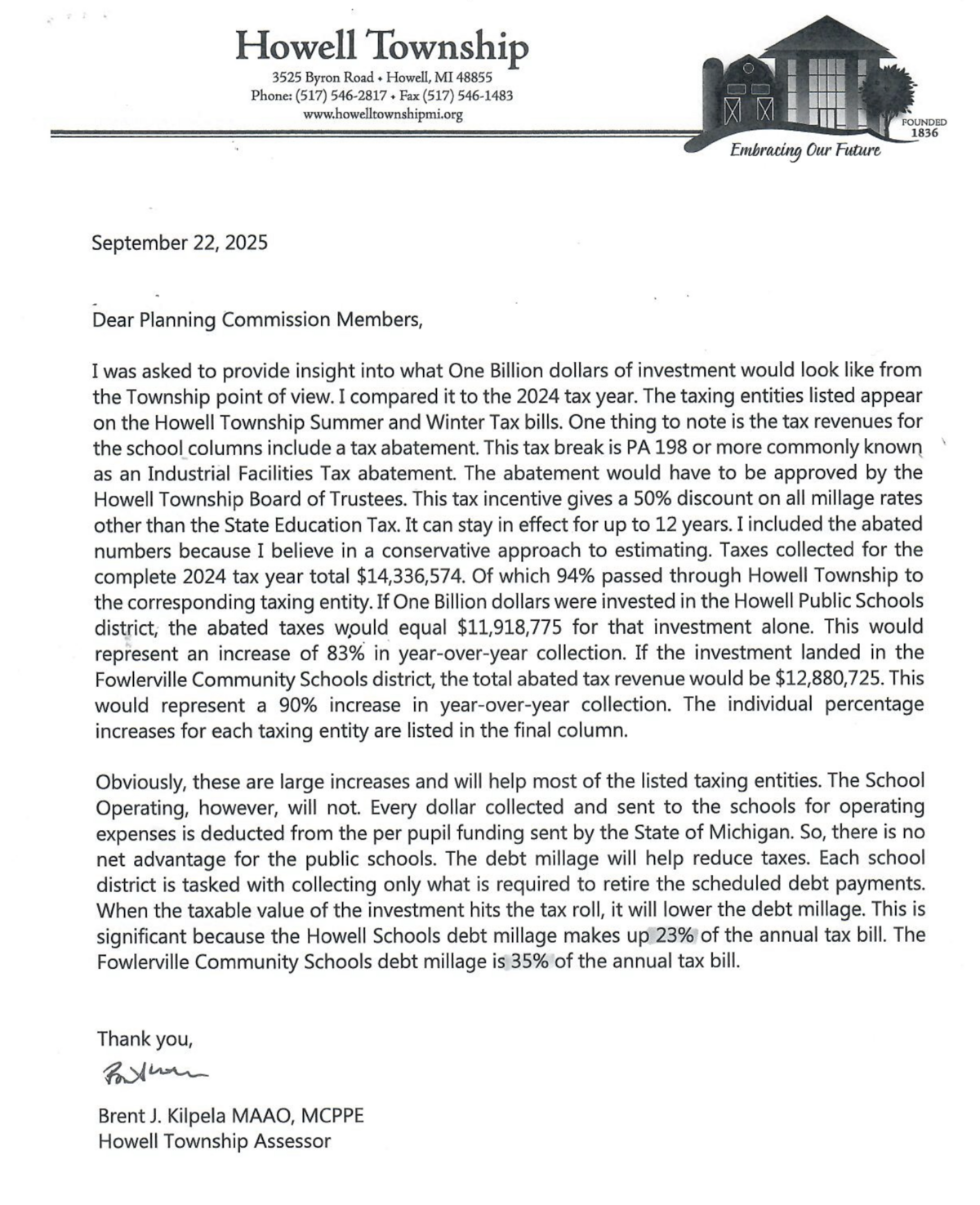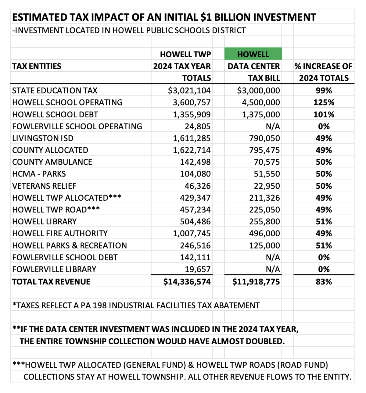 With an estimated $1 billion investment per phase, the project would significantly expand Howell Township’s overall tax base, nearly doubling it with the first phase alone. This growth creates the potential for lasting benefits to local schools, public safety, and essential services, providing additional resources to maintain the quality of life residents value. As the project develops over time, its contribution to the local economy and tax stability will continue to strengthen the community for future generations.